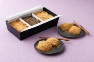 3種類のきな粉がセットになった「大筥ぜいみ(おおばこぜいみ)」は、食べ比べが楽しめ、おすすめです。