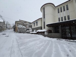ふと見上げると、「大」の文字も、雪で真っ白に染まっていて、 いつもよりやさしい表情でした。❄️