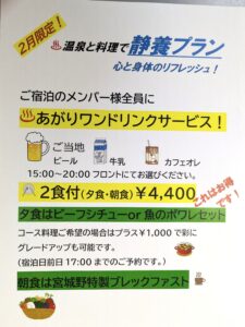 サンダンス・リゾート宮城野ではとてもお得な『静養プラン』を開始いたします!(2月限定です。)