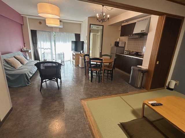 8畳の和室にリビングとキッチンのついた部屋タイプです。
