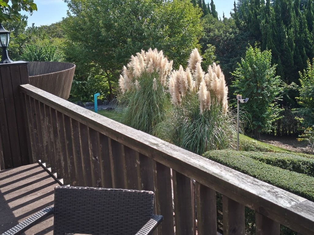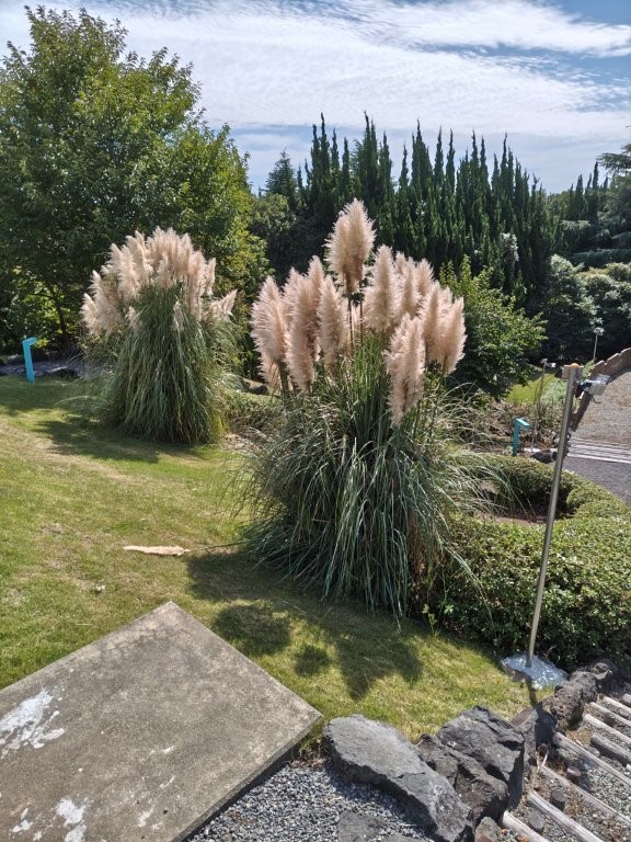 さて、施設の庭ではパンパスグラスが見事な穂をなびかせております!