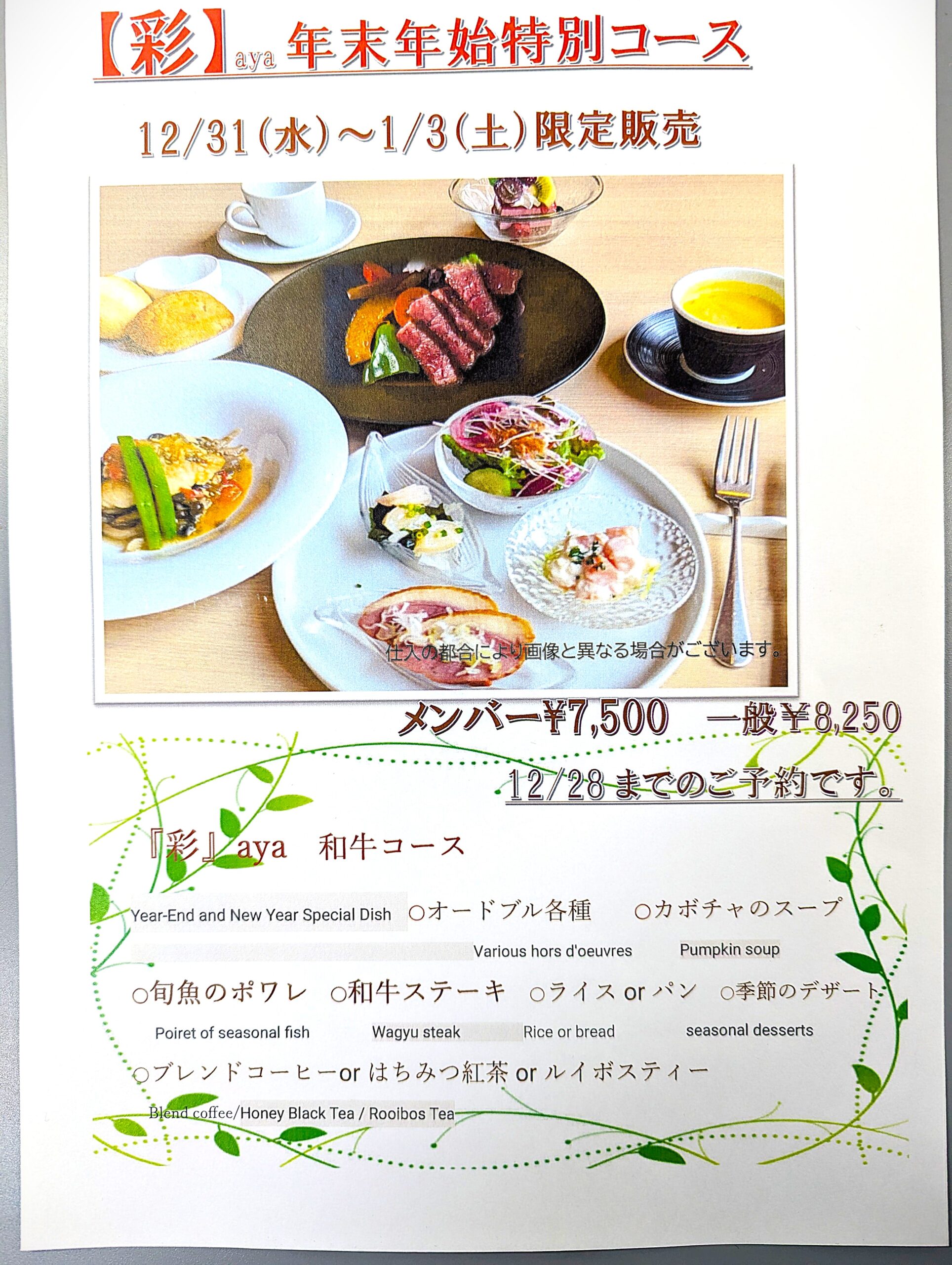 【彩】年末年始特別コースを販売します!!!!