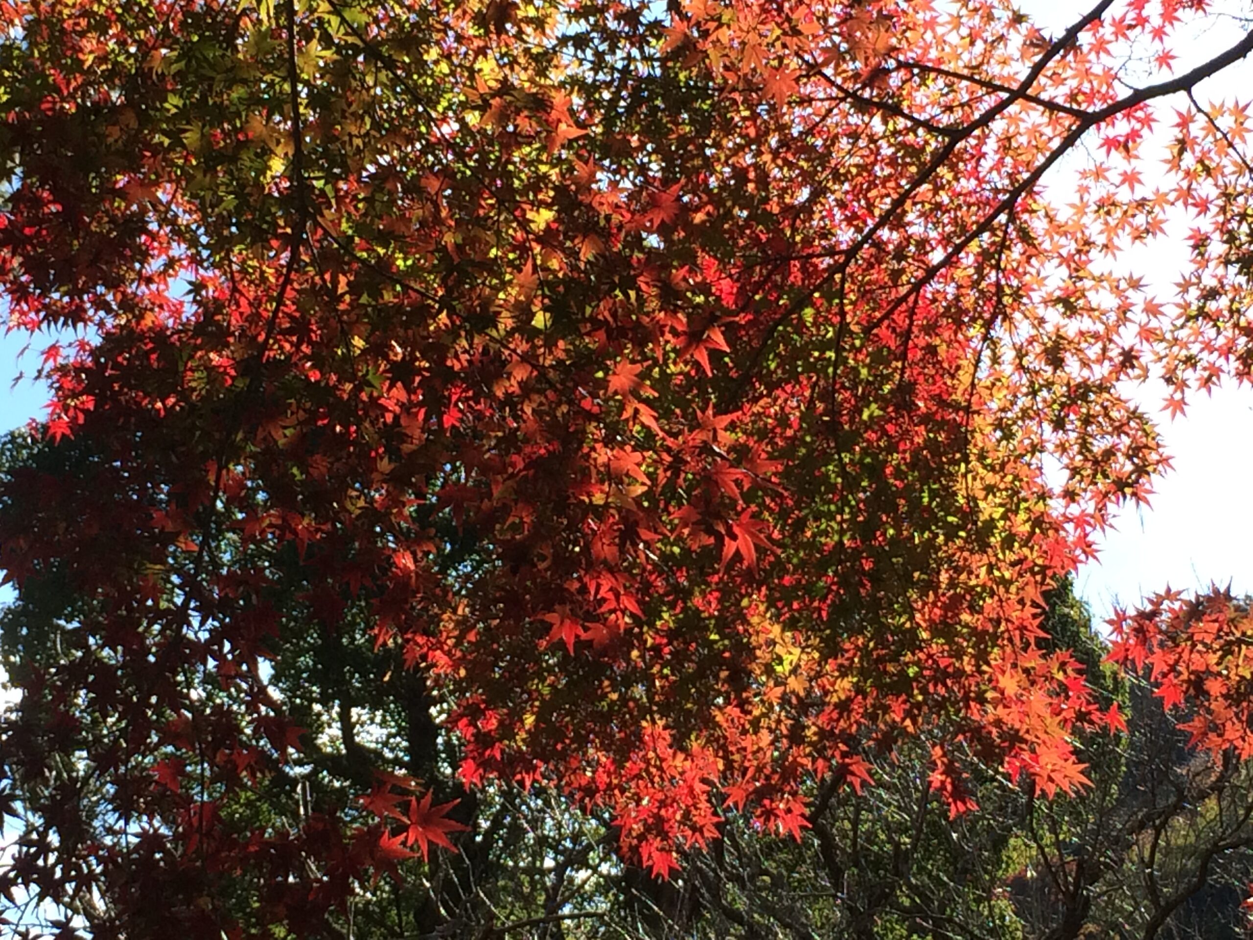 日の光に透ける紅葉も、心が洗われるようです…